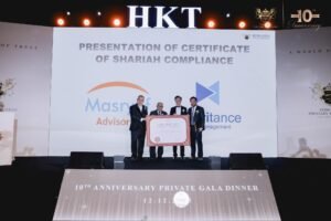 为感谢为该基金提供伊斯兰教义顾问服务的 Masryef Advisory Sdn. Bhd香港信托资产管理有限公司首席执行官梅英霆先生传承资产管理有限公司首席执行官张培群先生共同向 Masryef Advisory Sdn. Bhd. 创办人Khairil Anuar Bin Mohd Noor先生、总监Mohd Hilmi Bin Mohd Hithir先生颁授纪念奖牌。此项致敬不仅肯定了 Masryef Advisory Sdn. Bhd 在伊斯兰教义顾问服务中的专业贡献,更彰显了双方在长期合作中建立的深度互信。正因这一紧密协作,我们得以在伊斯兰金融与信托领域持续推动创新实践,助力行业迈向更高标准的发展。